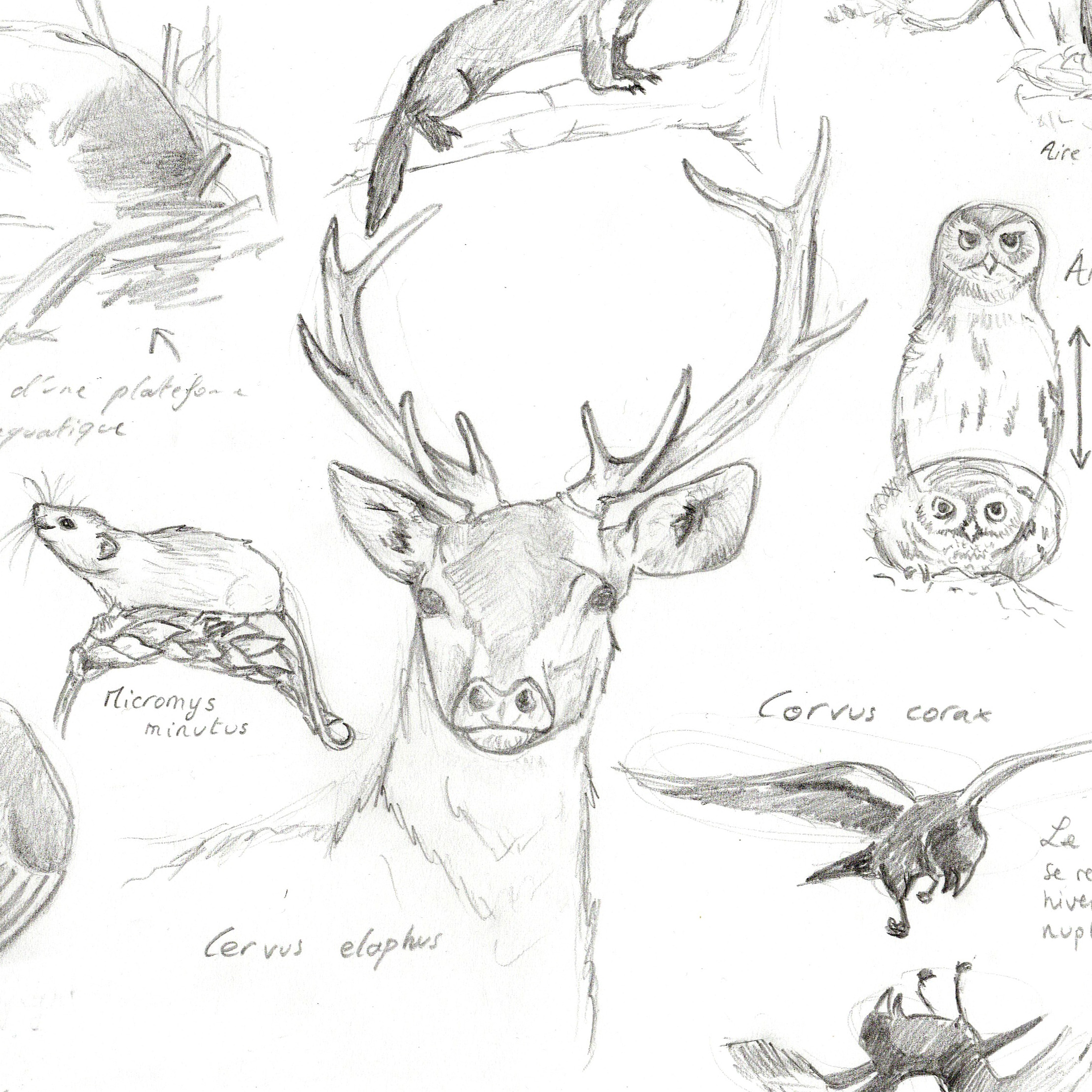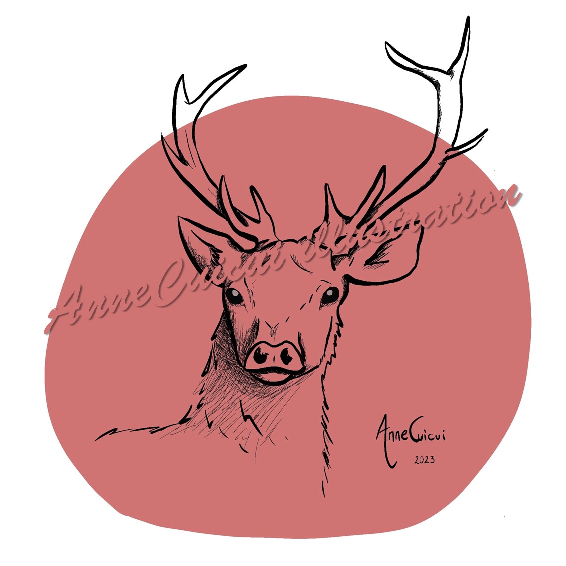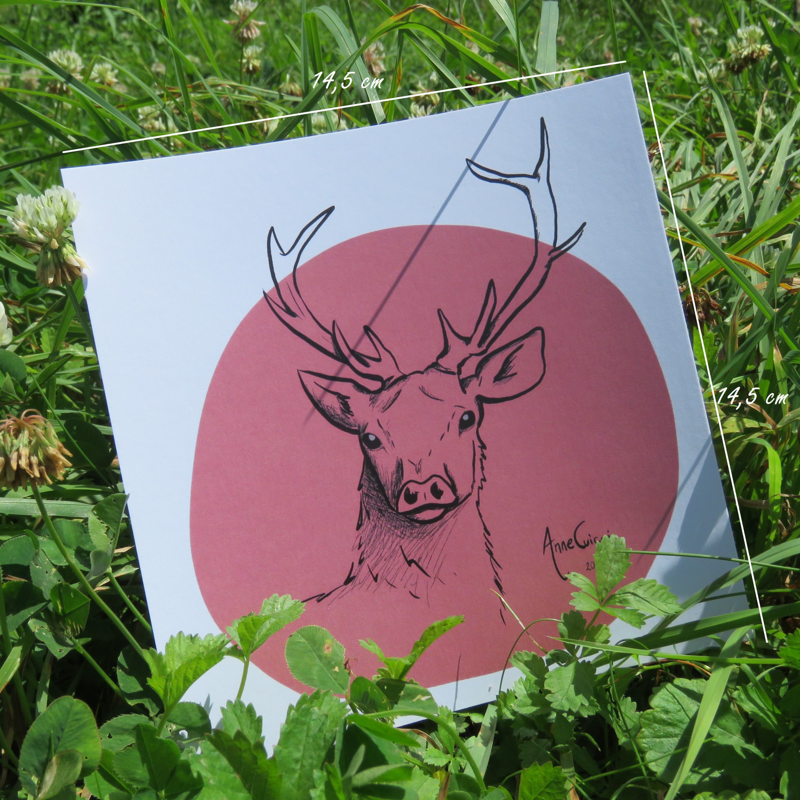 Carte carrée d’un cerf élaphe / Illustration numérique réalisée à partir d’un croquis / 14,5 x 14,5 cm