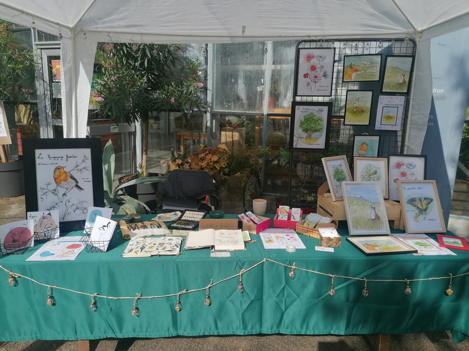 J’avais également un stand sur lequel j’ai pu mettre en vente certains de mes produits (aquarelles originales, copies, marque-pages, cartes). Que vous pouvez d’ailleurs retrouver et commander dans ma boutique en ligne !